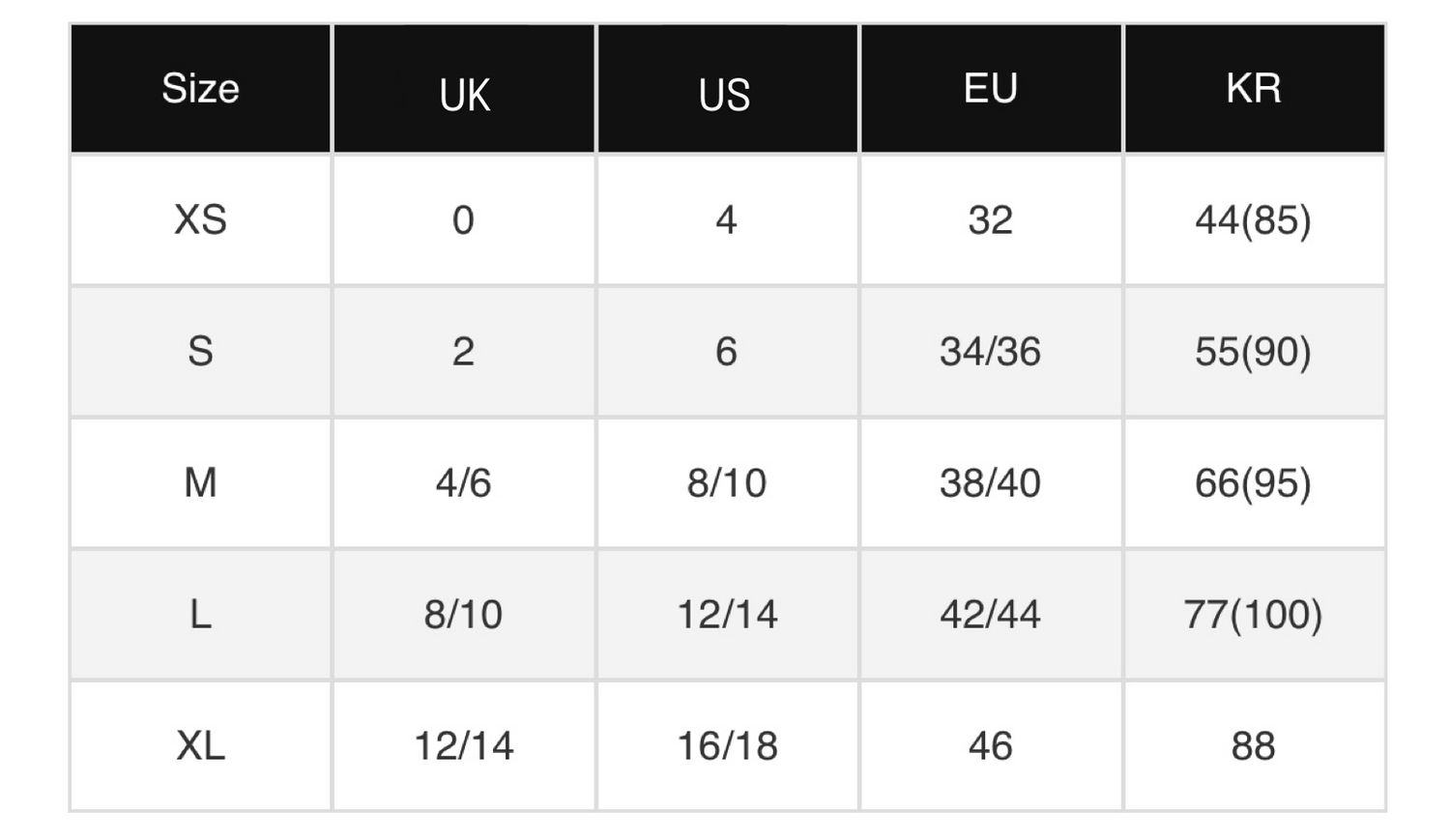Leggings Size Chart